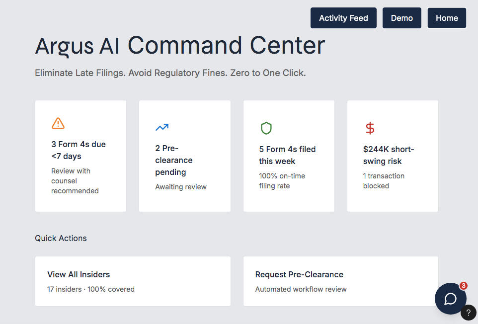 IMPORTANT: Argus AI is a software tool designed to automate and support certain administrative aspects of SEC insider trading workflows, and does not constitute legal, tax, or investment advice. Qualified legal counsel is strongly recommended for all compliance matters.